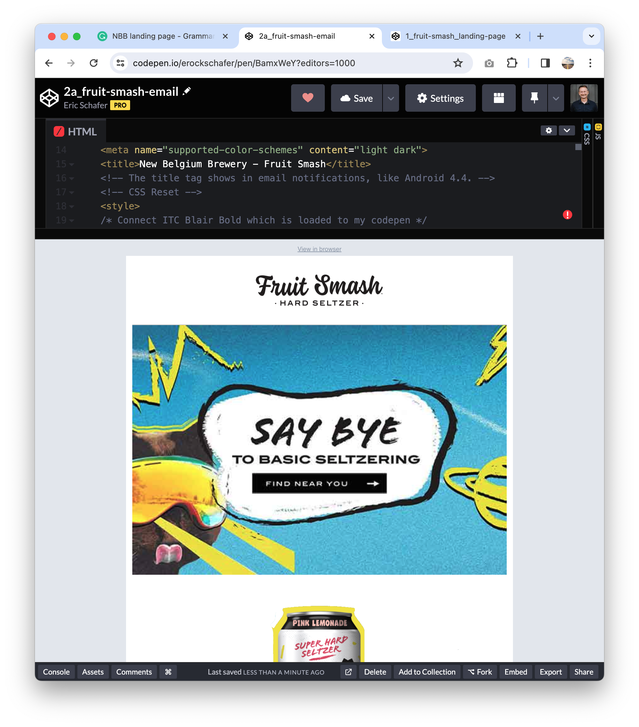 Fat Tire, 1554, and Juice Force are among the many outstanding craft beers from New Belgium Brewery - a favorite in our hometown. Recently, I had the chance to compete for a valuable position on their web team by completing a code test. The task was to create an email for their product, using a collection of stunning images from their art department. I was thrilled to showcase my skills, and overall, it was a great experience. I still love to enjoy the excellent brews from this brewery, located in the Napa Valley of Beer.