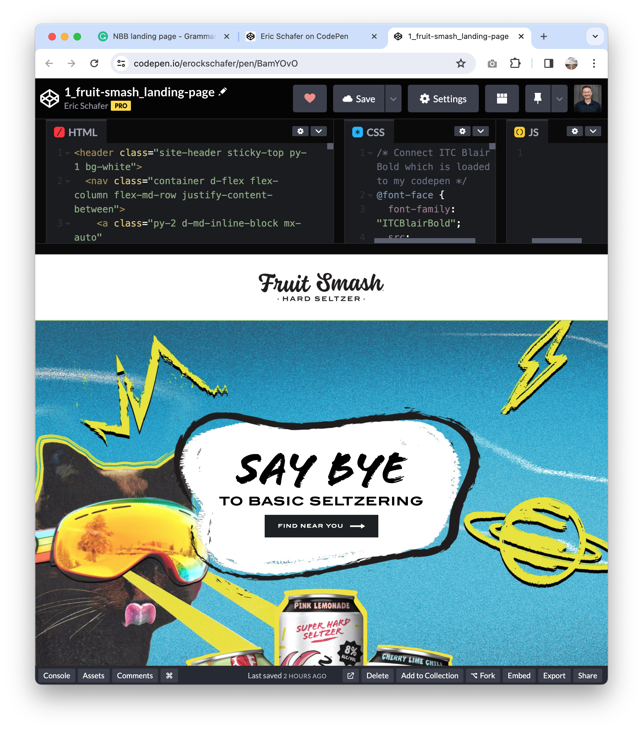 Task: With a few images from New Belgium, I created a custom marketing landing page using CSS, HTML, SVG and Bootstrap.